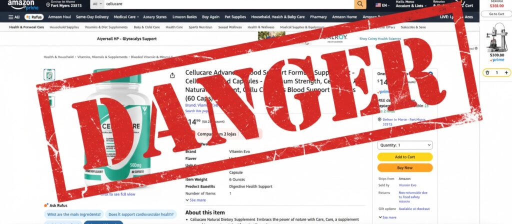 We strongly advise against ordering Cellucare from Amazon, Walmart, eBay or Walgreens, as these sources often sell fake versions with entirely different ingredients, which can be very dangerous.