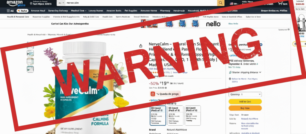 We strongly advise against ordering NerveCalm from Amazon, Walmart, eBay or Walgreens, as these sources often sell fake versions with entirely different ingredients, which can be very dangerous.